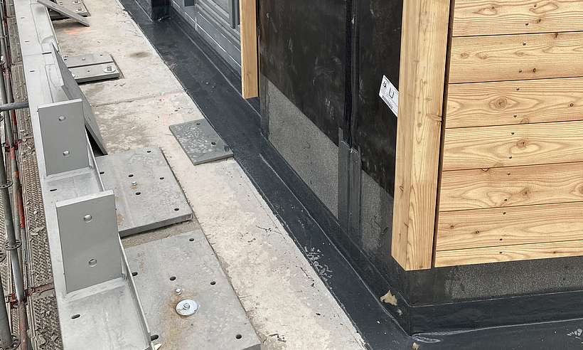 Nach dem Abdichten der Warftgeschosse mit Flutschutztoren wurden von der Mannschaft der Gerke Dachdeckerei, Bad Bramstedt alle Anschlüsse der Balkone sowie die Durchdringungen langzeitsicher mit KEMPERTEC EP5-Grundierung grundiert und mit KEMPEROL 2K-PUR abgedichtet. Insgesamt wurde hier ca. 3000 m² KEMPEROL Abdichtung eingesetzt.